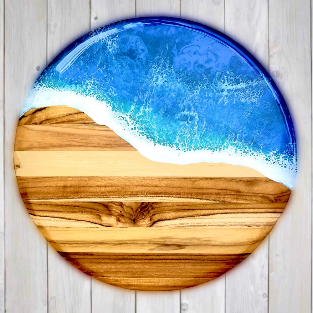 These blue or sunset themed ocean boards can be used to decorate any space as a charcuterie board, candle holder, a stand for perfume or jewelry, or simply as art!